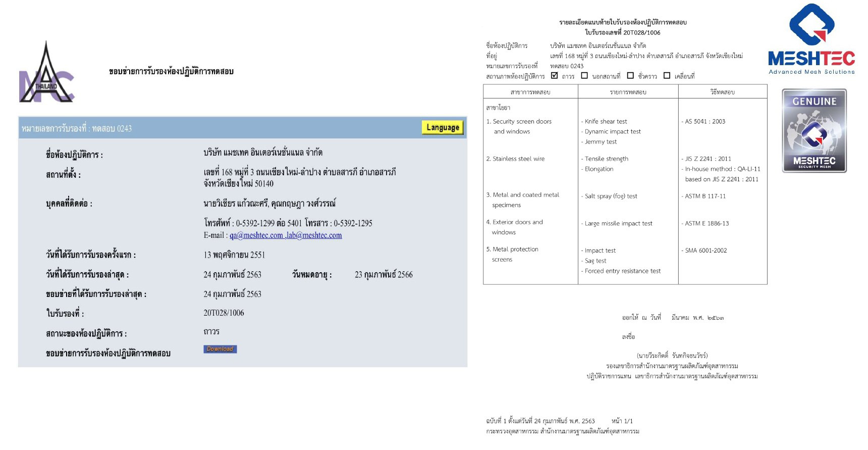 ได้รับการรับรอง ISO 17025:2005